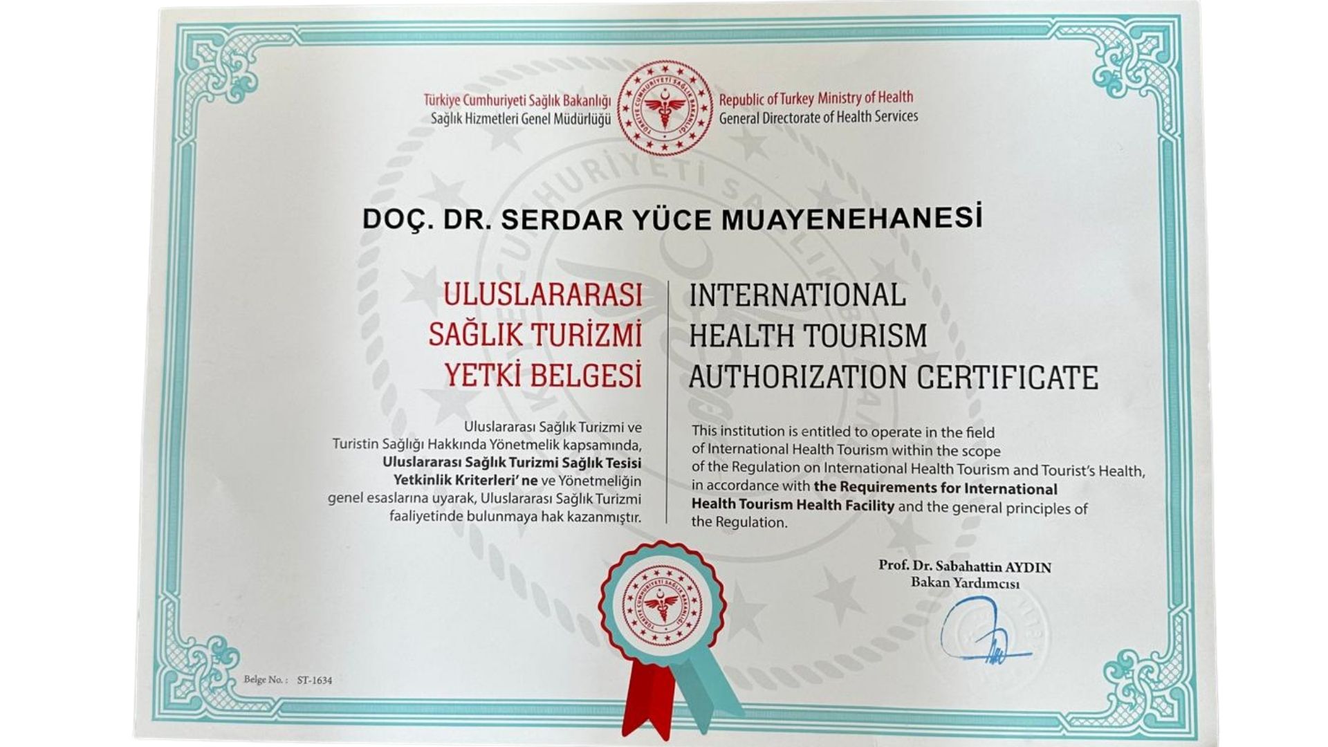 Uluslar Arası Sağlık Turizmi Yetki Belgesi